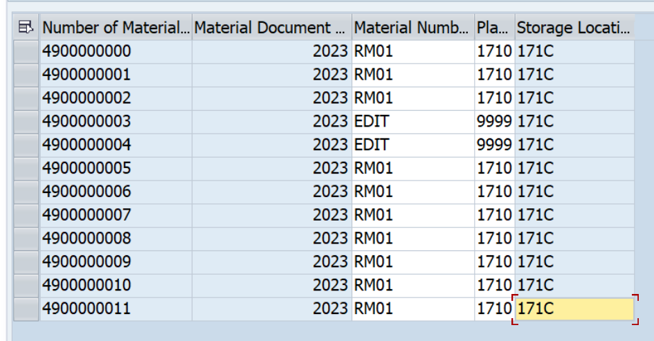 이 폼에서는 MSEG 테이블에서 자재 문서 번호 범위를 기준으로 데이터를 가져옵니다.