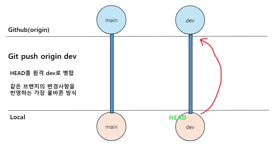 pull과 마찬가지로 같은 브랜치로 push를 해야 바람직 하다.