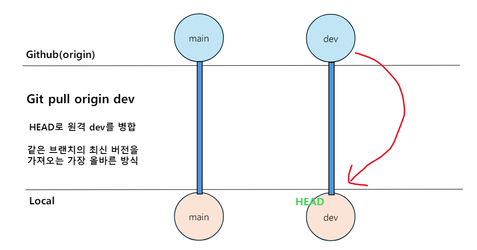 현재 HEAD를 원격 브랜치로 병합하는 명령어.