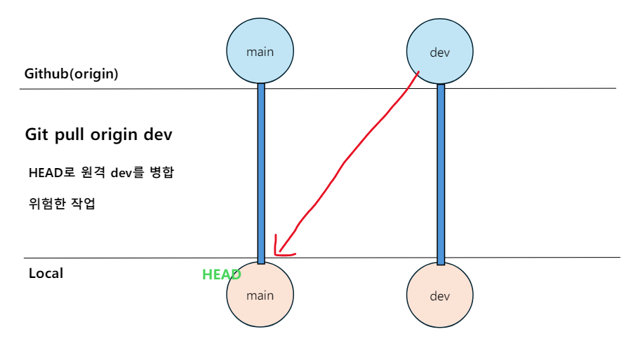 git pull <원격 레포> <!HEAD인 원격 브랜치>(위험)