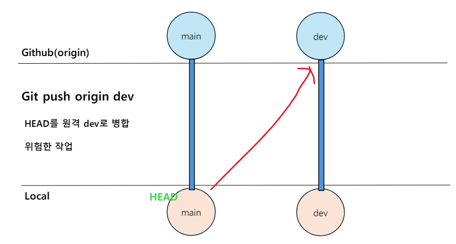 git push <원격 레포> <!HEAD인 원격 브랜치>(위험)