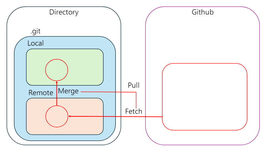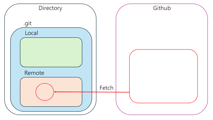 원격 레포 -> Remote 디렉토리로 최신 버전을 가져와 Local과 비교해 변경이 있는지 알려준다. (실제 병합은 X)