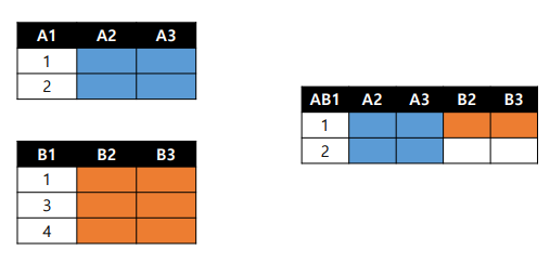 왼쪽에 기준이 되는 테이블을 출력하고 오른쪽에 지정한 값과 일치하는 테이블 값을 출력한다.