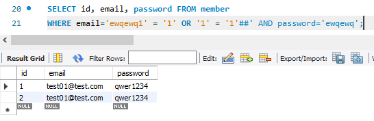 사용자가 id, pwd에 다음과 같이 입력한다면?