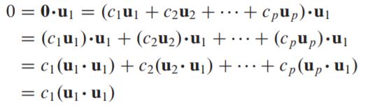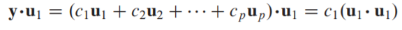 위 식에서 orthogonal set이기에 u1 끼리의 dot product빼고는 전부 0이 된다.