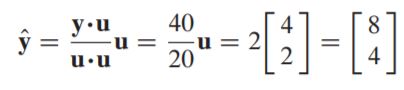 orthogonal projection of y onto u 인 y^ 를 구하기위해 계산하면 다음과같고,