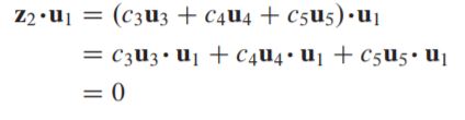 z2 in W⊥ 을 보이기 위해선 z2 가 basis {u1,u2} for W의 vector에 대해 orthogonal함을 보이면 된다.