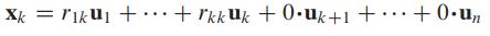 이전에 배웠던 것처럼 xk = u1,…,uk으로 나타낸 linear combination 임을 알 수 있고 x가 n까지 나타날수 있으니 아래 식처럼 나타낼 수 있다.