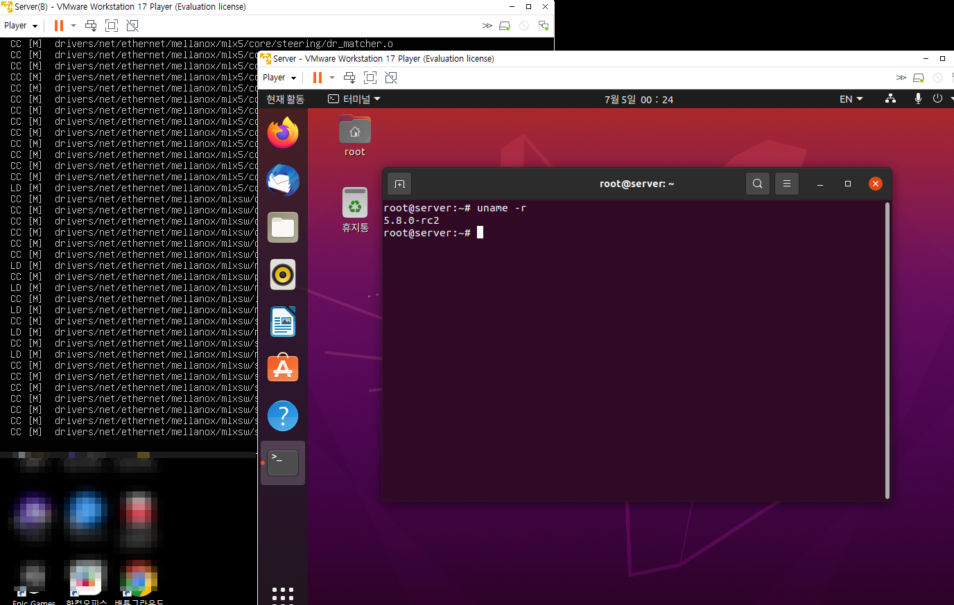 *make 명령어 이후, make modules_install, make install 순으로 컴파일 해주면 커널 업데이트 완료