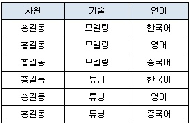 '홍길동'의 기술은 두개이고 언어는 세개, 다가 종속으로 인해 많은 중복 현상이 발생한다.