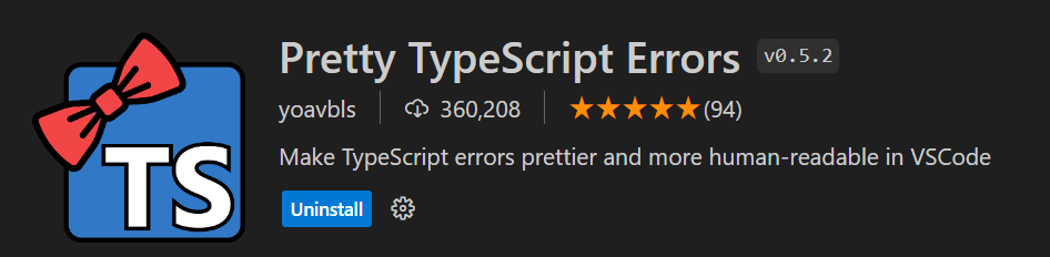 vs코드에서 얘를 다운로드 해주면 -> Pretty TypeScript Errors
