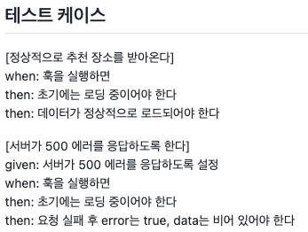 테스트 케이스를 작성하고 PR 본문에 공유했다. 해당 PR에서 무엇을 했는지 테스트 케이스로 공유할 수 있어 좋았다. 테스트 케이스만 봐도 어느 영역까지 커버했는지 알려줄 수 있었다.