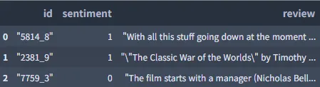 review_df = pd.read_csv("/content/drive/My Drive/Colab Notebooks/labeledTrainData.tsv", sep='\t', quoting=3)