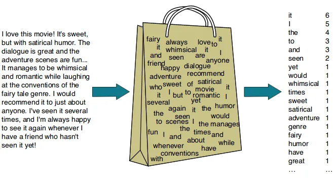 bag of words vector : [1, 2, 1, 1, 2, 1, 1, 1, 1, 1]