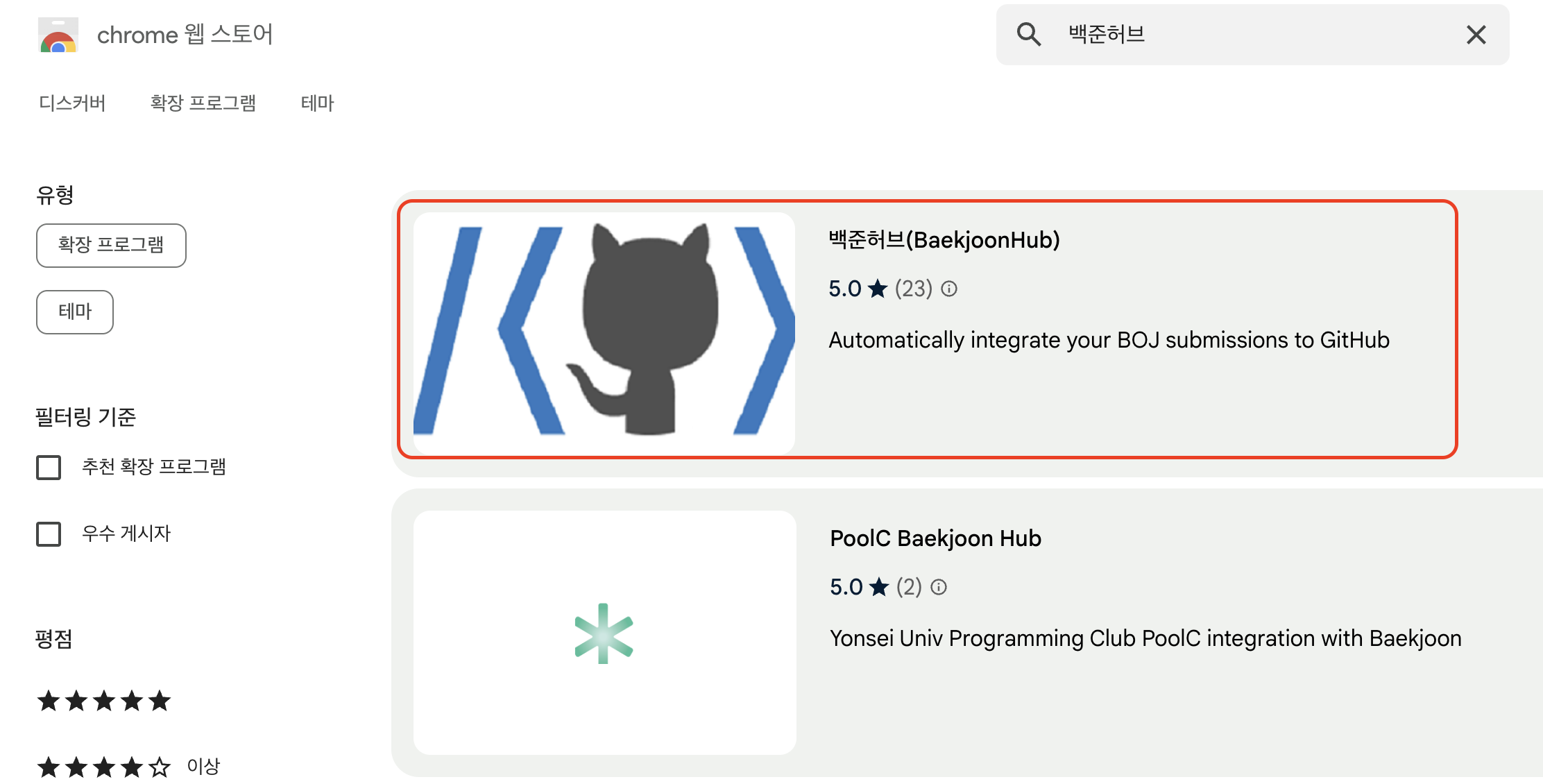'백준 허브' 검색