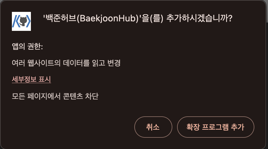 크롬 확장 프로그램에 백준 허브를 추가하셨다면, 백준 허브와 Github를 연동해야 합니다.