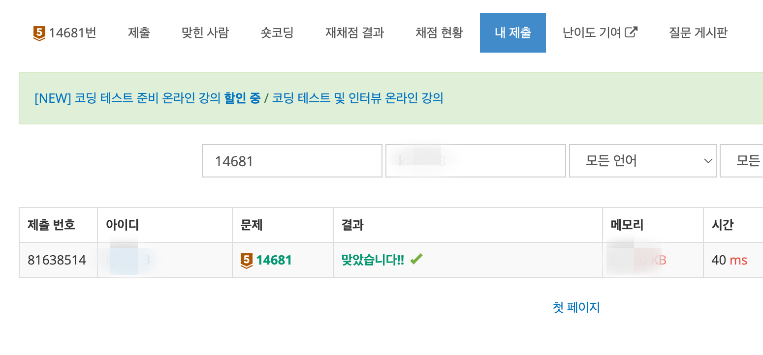 문제를 풀어보고 결과에 "맞았습니다!! ✔️(초록색 체크)" 뜨면 자동으로 커밋