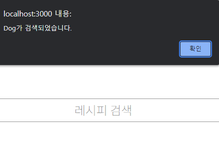 우선은 Dog가 있다면 알림창이 뜨게 구현했다! 나중에 백앤드랑 연결하게 되면 검색어와 관련된 리스트가 나오게 구현하겠지 ? ㅎ