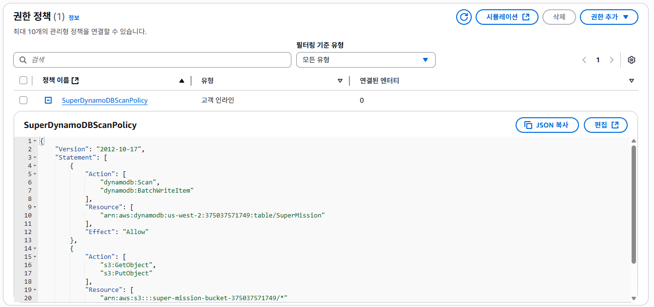 SuperDynamoDBQueryRole은 특정 속성만 쿼리하도록 제한해, 데이터 노출을 최소화합니다.