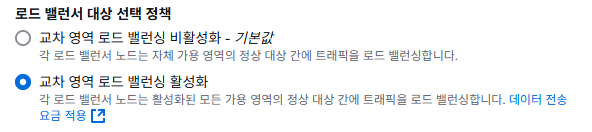 활성화 시: 모든 로드 밸런서 노드가 모든 가용 영역의 인스턴스에 트래픽을 고르게 분배합니다