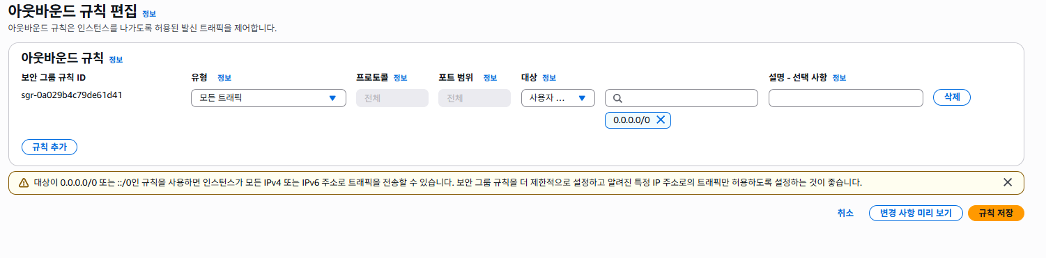 0–60001 포트 전체 개방 (0.0.0.0/0)
