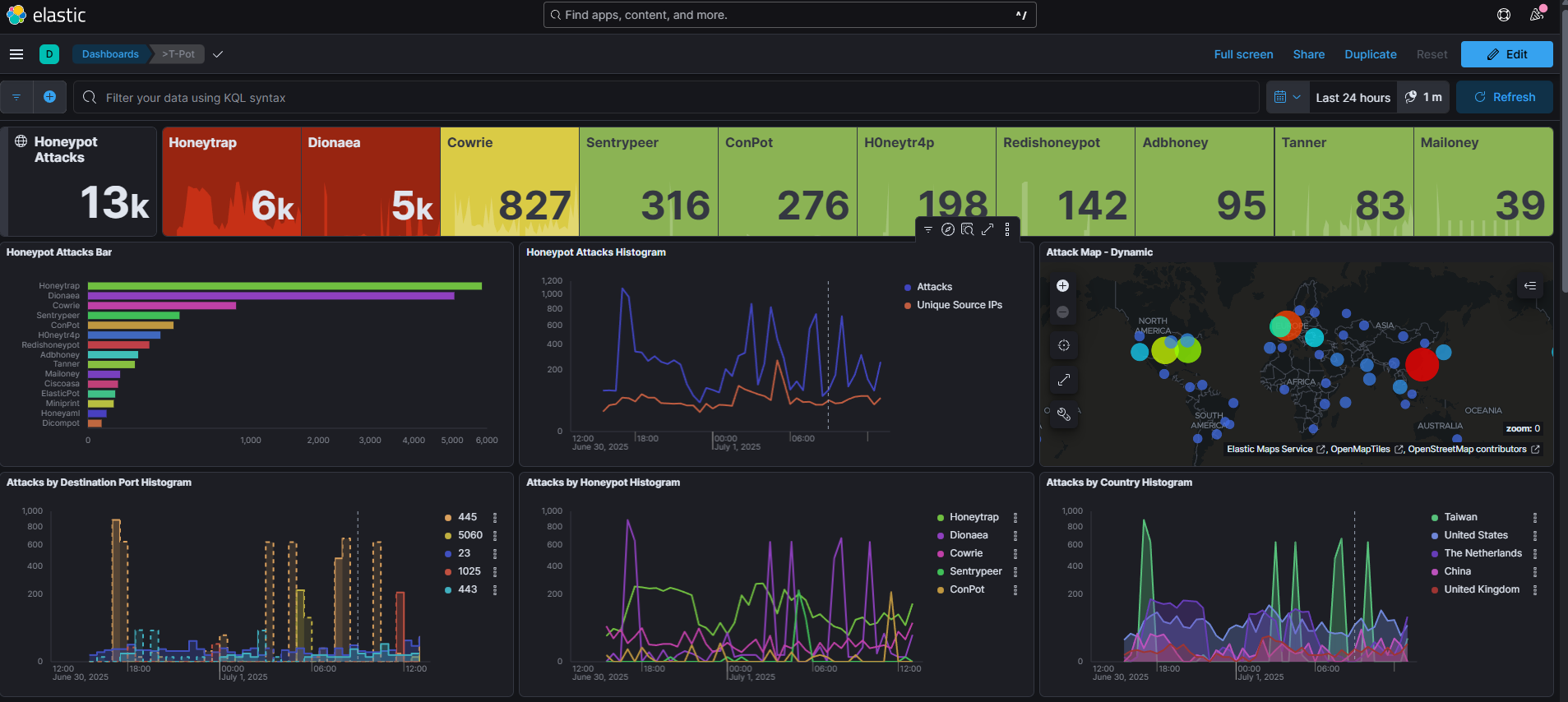 이 포트는 Cockpit 대시보드 전용 포트다. 이곳에서 전체 허니팟 상태를 모니터링하고, 이벤트 로그, 시스템 상태 등을 한눈에 확인할 수 있다. 정식 T-Pot UI이며, 관리자들이 주로 사용하는 포트다.