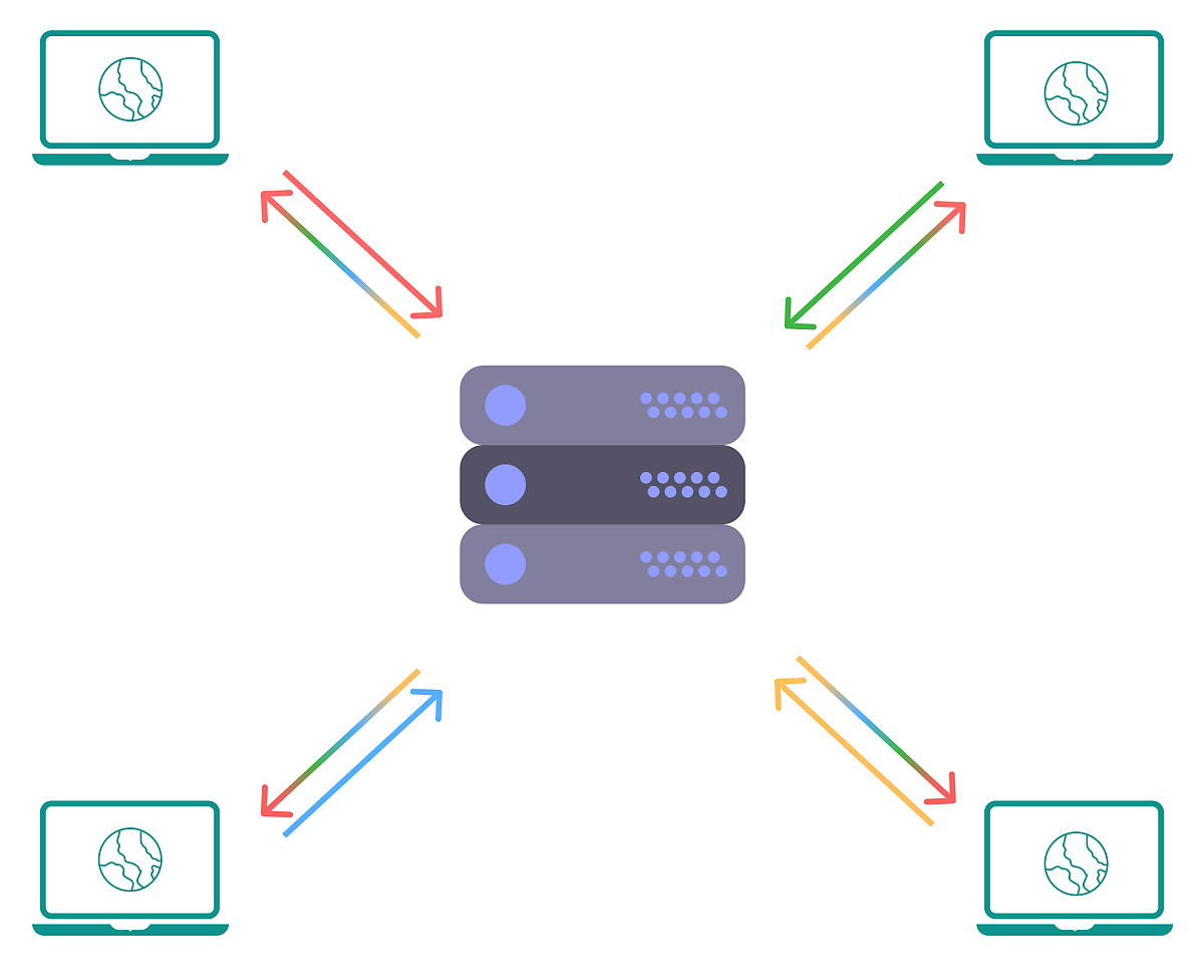 - 개념: 중앙 서버가 각 클라이언트의 미디어 스트림을 받아서 필요한 클라이언트에게만 전달하는 방식입니다.