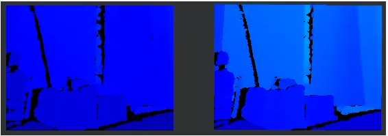 갑자기 깊이값이 크게 변할 때 temporal filter를 사용하면 이런 변화를 최소화할 수 있다.