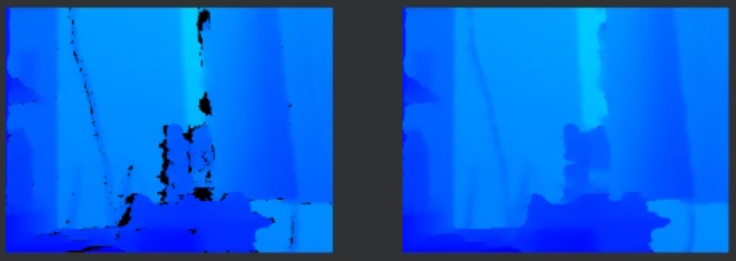 Temporal Filter가 여러 텍스처로 프레임을 쌓아두면, 그 상태에서는 Hole Filling Filter가 단일 텍스처의 값을 참조하는 방식과 맞지 않게 되어 데이터 불일치가 발생할 수 있다는 것이다.