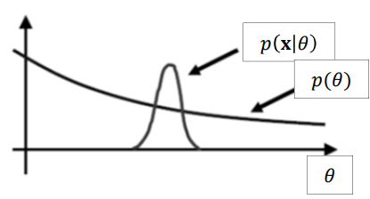 - Note that the prior PDF is nearly constant where p(x∣θ) is non-zero