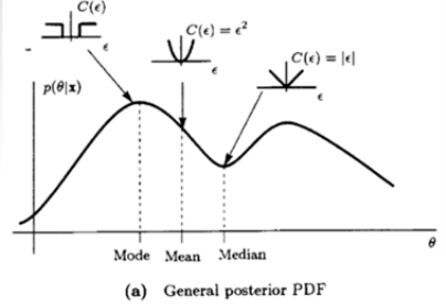 R(θ^)=Bmse(θ^)=E[(θ−θ^)2]→θ^=E(θ∣x)=mean of p(θ∣x)
