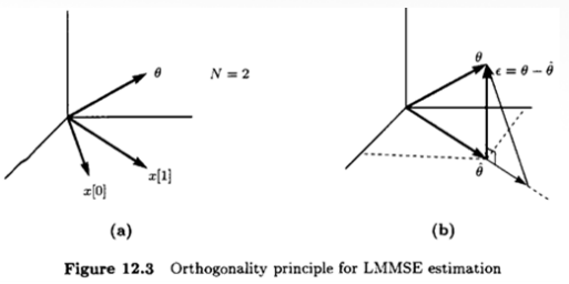 ϵ = θ − θ ^ \epsilon=\theta-\hat\theta ϵ = θ − θ ^ should be orthogonal to the subspace spanned by { x [ 0 ] , x [ 1 ] , ⋯ , x [ N − 1 ] } \{x[0],x[1],\cdots,x[N-1]\} { x [ 0 ] , x [ 1 ] , ⋯ , x [ N − 1 ] }
