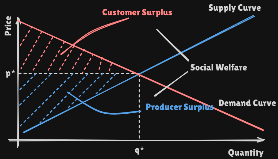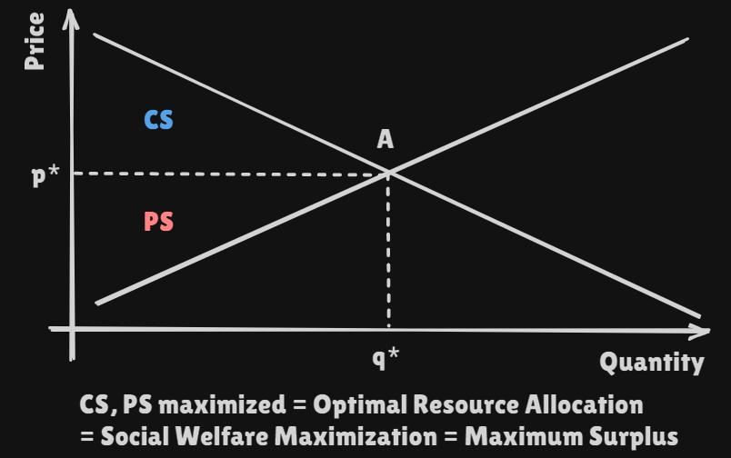 social welfare would be optimized. And also, consumer's surplus and producer's surplus are also maximized.Goal of Economics : Optimal Resource Allocation