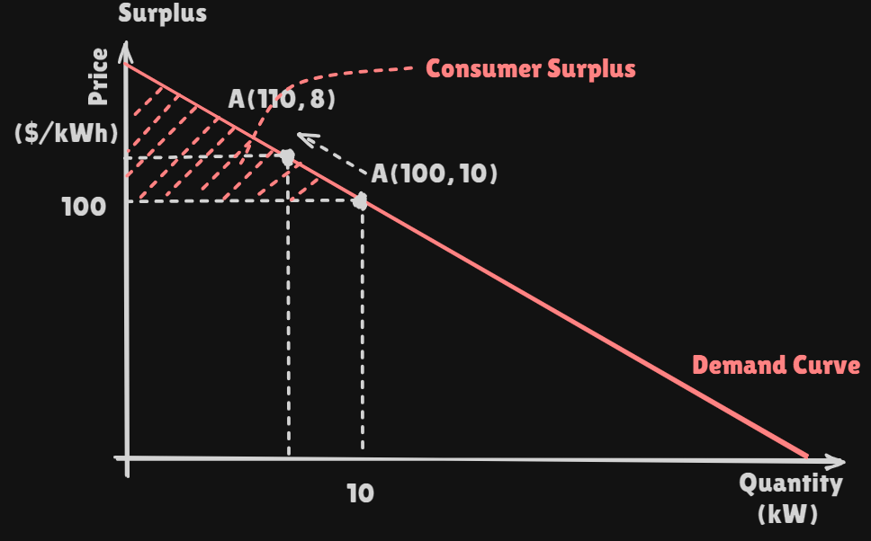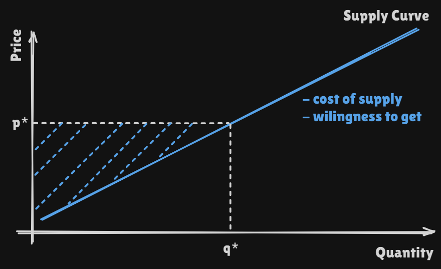 The consumer gain that exceeds the market equilibrium price = wilingness to pay(demand curve) - market price