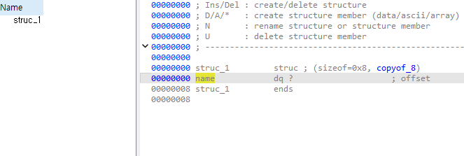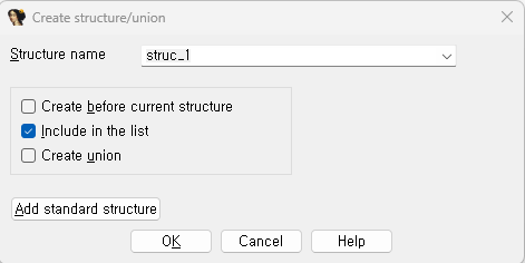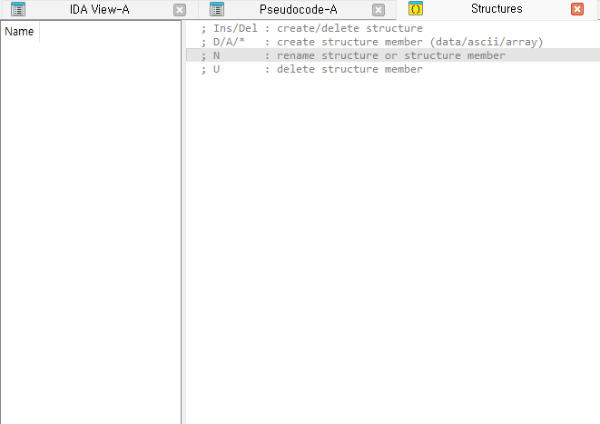 IDA Sub view 중에서 Structure 탭에 진입해서 Add new structure를 해보자