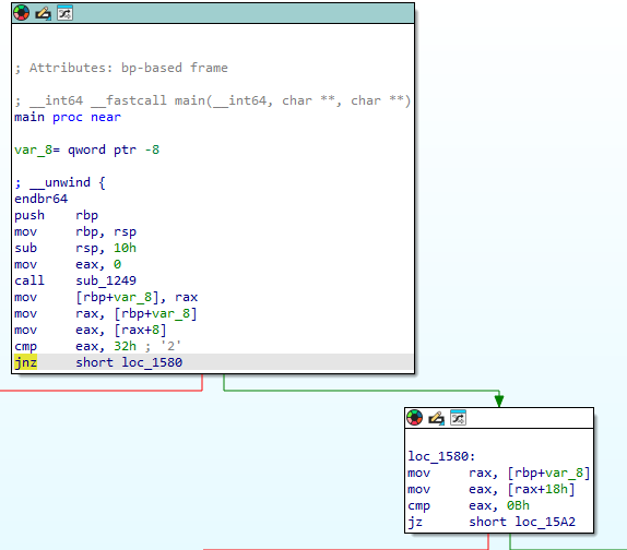 main function에서 "fz short loc_1580" 이부분에서 유효성 검증을 하고 flag를 주는것같다.