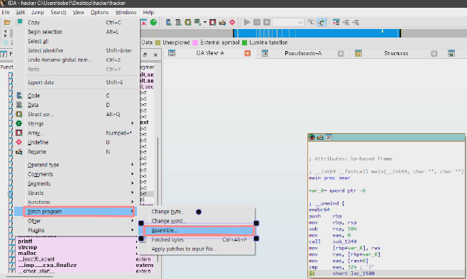 Edit > Patch Programs > Assemble 을 눌러 수정 창을 열어본다