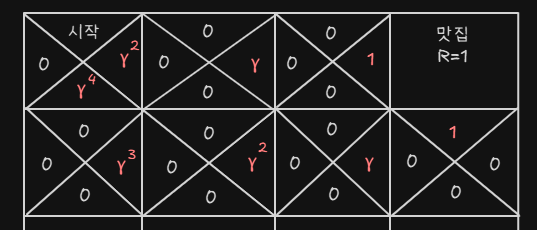 - 그럼 그 방향으로 갔더니 보상이 지급되었으니까 그 방향의 Q-value를 1로 업데이트한다