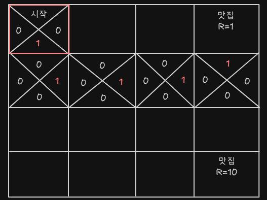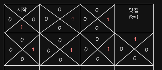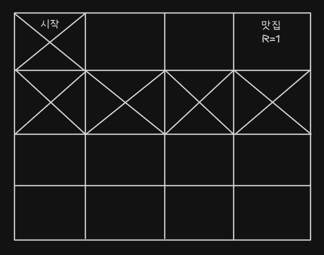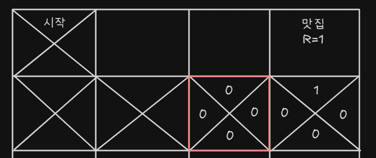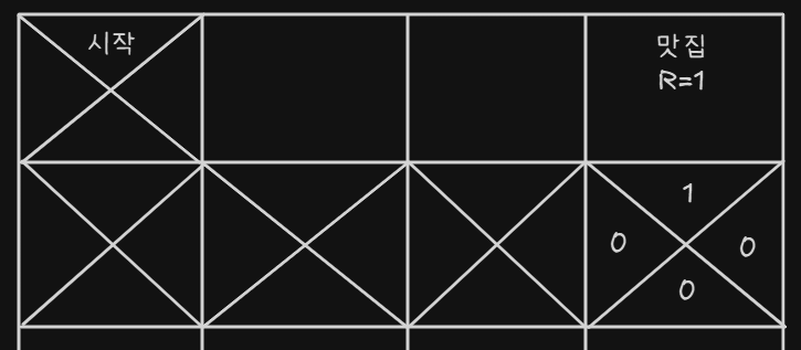 - 맛집에 들어가면 R(Reward) 보상을 받게 된다
