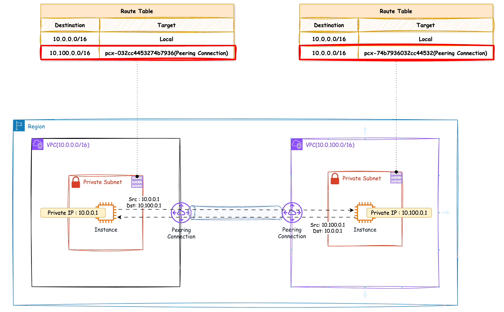 제한 사항이 있으므로 유의가 필요합니다.VPC Peering Connection 생성