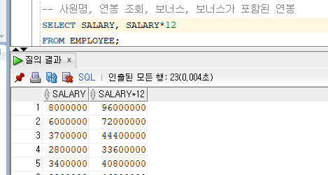 SELECT 절에 칼럼명 입력 부분에서 산술 연산을 할 수 있다.