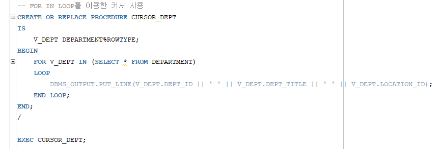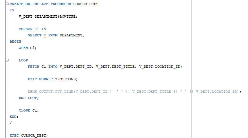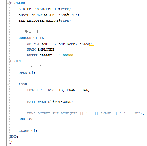 CLOSE 커서명;SET SERVEROUTPUT ON;