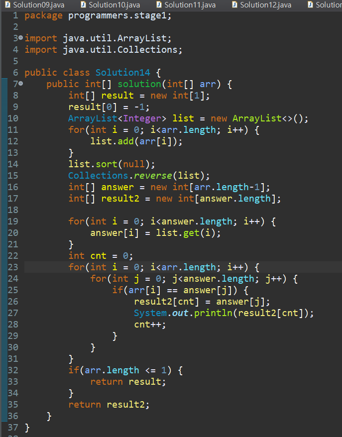 문제 설명 : 정수를 저장한 배열, arr 에서 가장 작은 수를 제거한 배열을 리턴하는 함수, solution을 완성해주세요. 단, 리턴하려는 배열이 빈 배열인 경우엔 배열에 -1을 채워 리턴하세요. 예를들어 arr이 [4,3,2,1]인 경우는 [4,3,2]를 리턴 하고, [10]면 [-1]을 리턴 합니다.