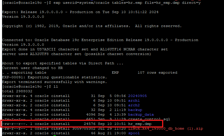exp userid=system/oracle tables=hr.emp file=hr_emp.dmp direct=y