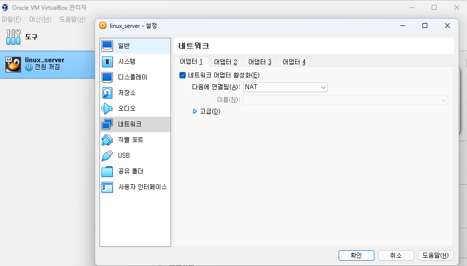 네트워크 어댑터1은 무조건 NAT