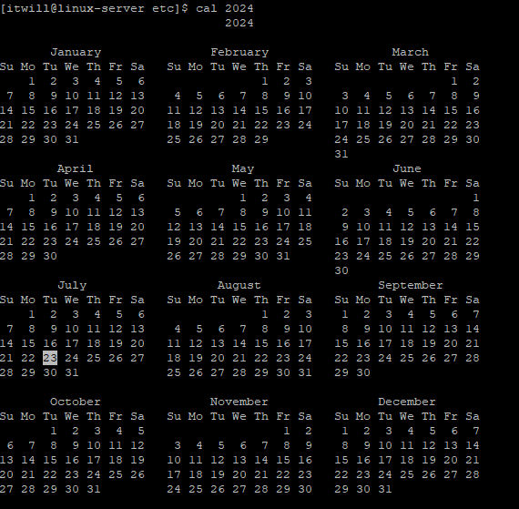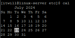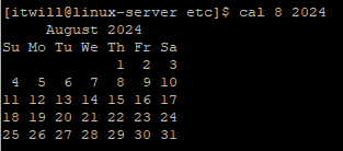 # cal month year : 요청 년도의 요청 월 달력 확인