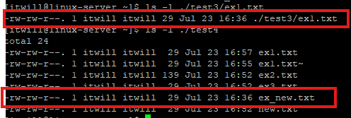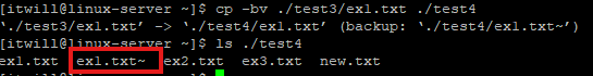 # cp ex2.txt /home/itwill/test1 : test1 디렉터리에 ex2.txt 파일 복사(절대경로)