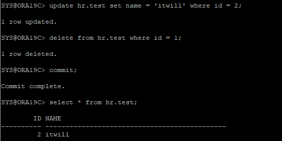 DML 작업 수행 후 COMMIT