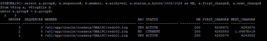 redo log file 확인