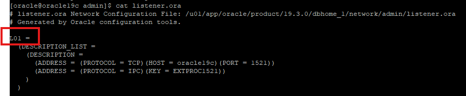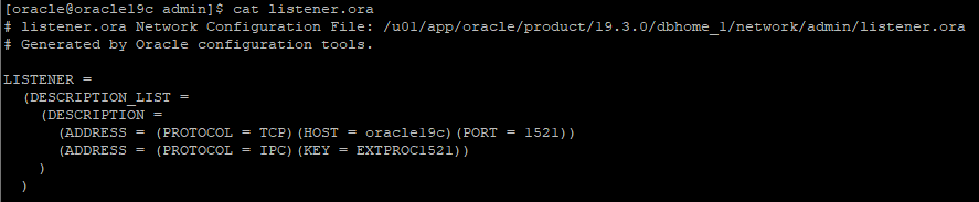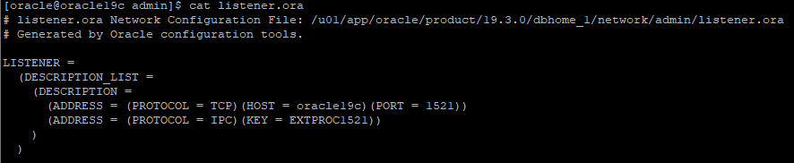 (ADDRESS = (PROTOCOL = TCP)(HOST = oracle19c)(PORT = 1521))